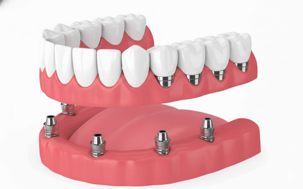 入れ歯とインプラントを組み合わせた治療方法で、インプラントを応用して固定する入れ歯です。歯を失った箇所に、片顎(上顎または下顎)2~6本のインプラントを埋入し、その上にアタッチメントというパーツと入れ歯を取り付けて使用します。