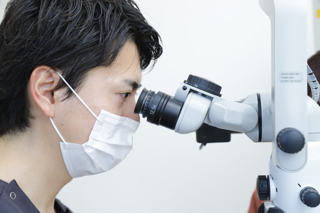 神経を取り除いて空洞になった根管を拡大、清掃。根管は狭く暗いため、マイクロスコープを使った根管の形成には高度で精密な技術が求められます。